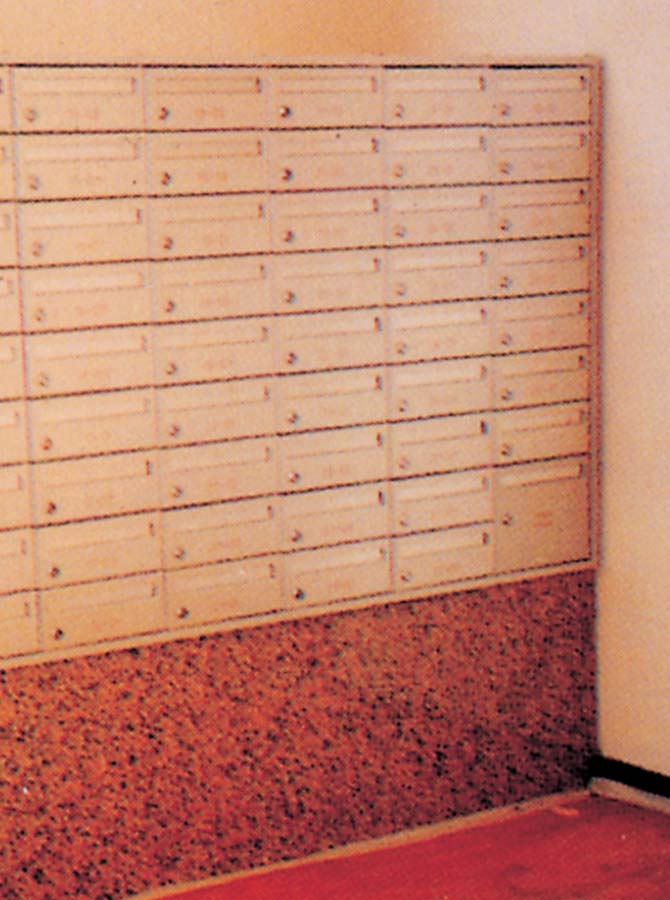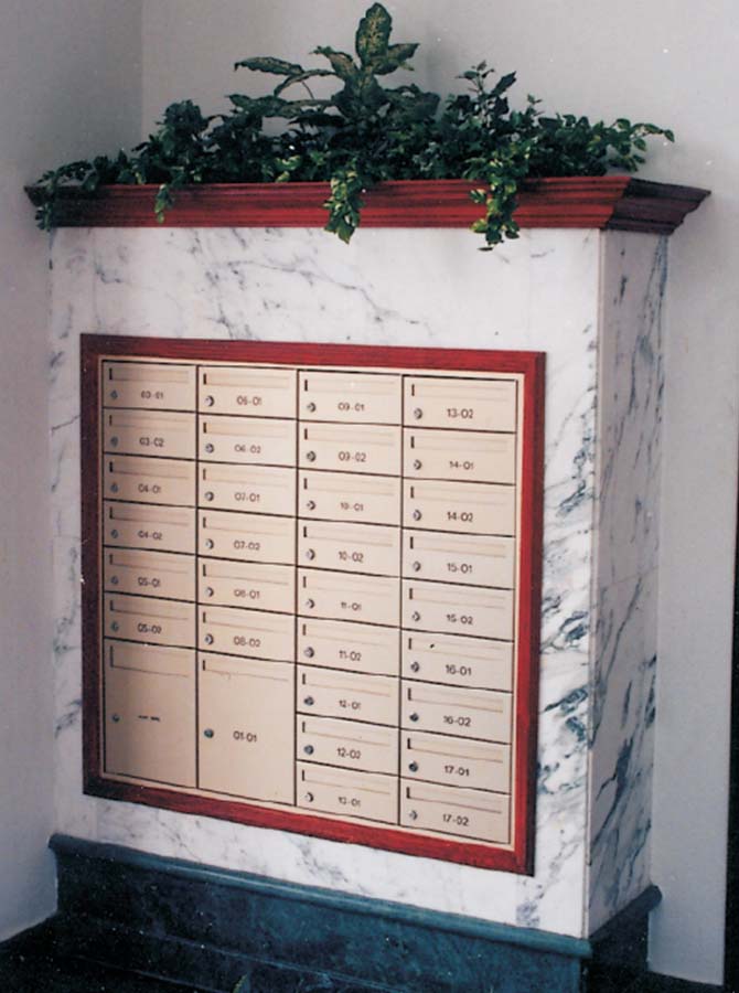 | Mail Box Design : | Side hung plain door with round posting aperture |